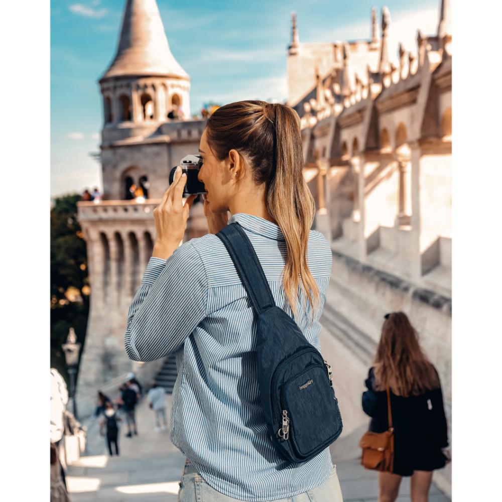 The Securtex® Anti-Theft Daytripper Sling is compact and perfect for outings from busy city streets to laid-back beach towns. Designed with water-repellent and cut-resistant materials, travel confidently with your essentials close at hand. And when you have it out of sight, lock the bag’s zippers so your valuables stay safe.